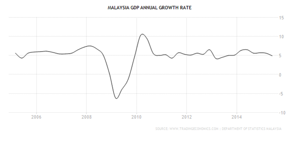 In 2014 oil revenue were 31% of Malaysia’s GDP and for 2015 this is expected to fall to 22% based on oil at USD55.
