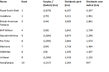 There is an inherent conflict of interest involved in the running of a pension scheme. The following tables aim to capture employers’ reluctance towards contributing to their pension schemes against their relative enthusiasm for declaring dividends for their shareholders.