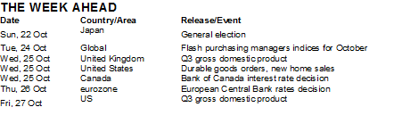 Global equities edged lower this week, with Japan’s Nikkei average a bright spot, closing at a 21-year high. Yields on US 10-year Treasury notes continued their rise, ending the week at 2.42%, up from 2.38% a week ago.