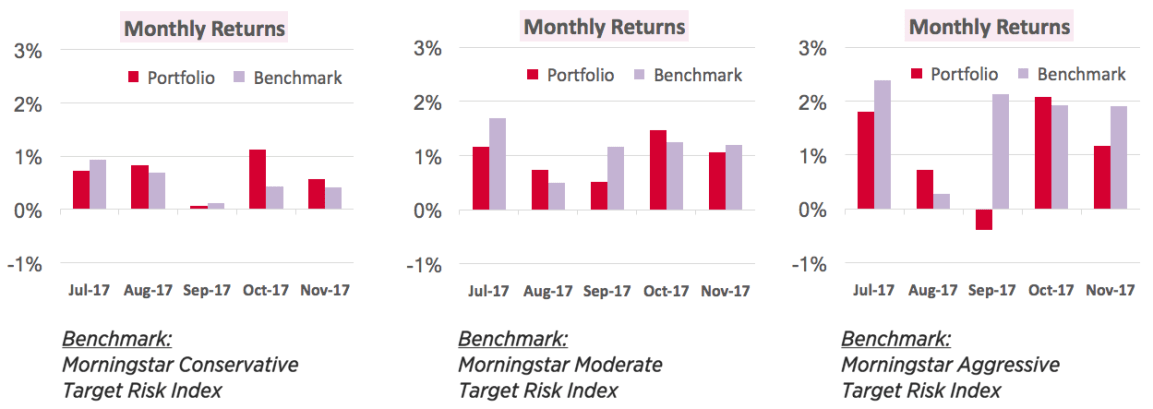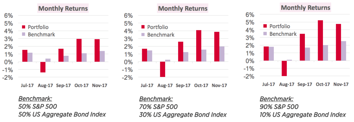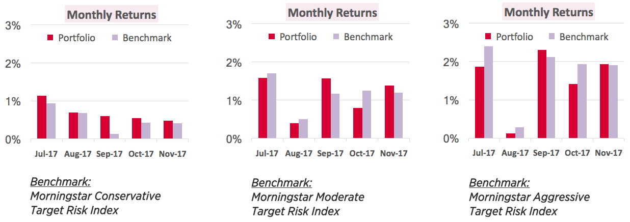 Three portfolios for each Robo-Advisor are presented: Cautious, Balanced and Aggressive, however we have a few other options for each client’s requirements.