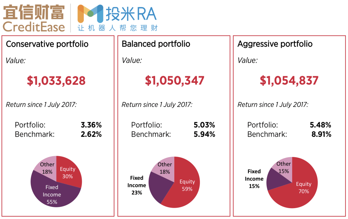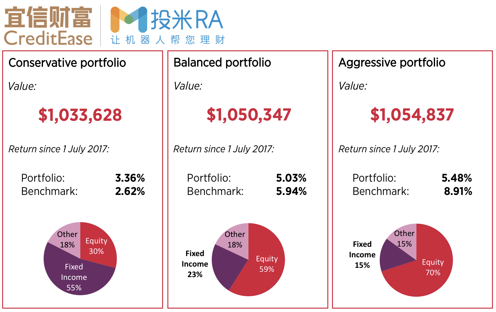 Fund Selector Asia started running a comparison of two other similar Robo’s back in July 2017, they made a hypothetical $1m in each of the three Robo-Advisors featured below. The results in today’s article show what that $1m is now worth. Return results will be published monthly until August 2018.