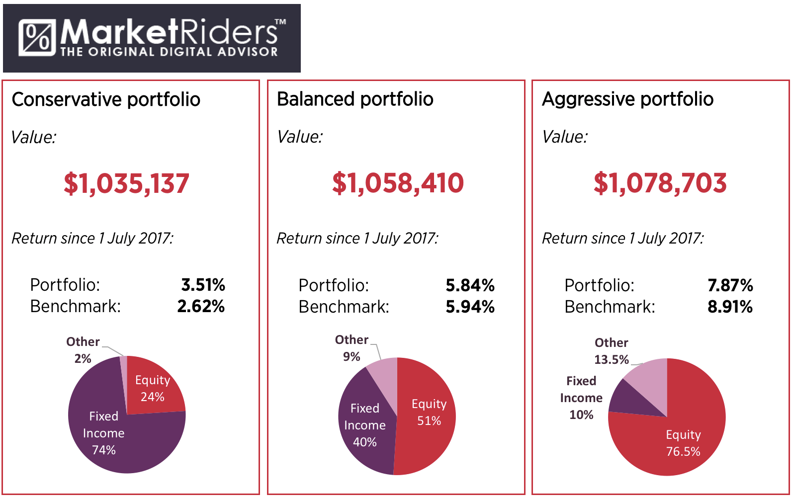 Marketriders’ portfolios have not changed their asset allocation since 1 July.