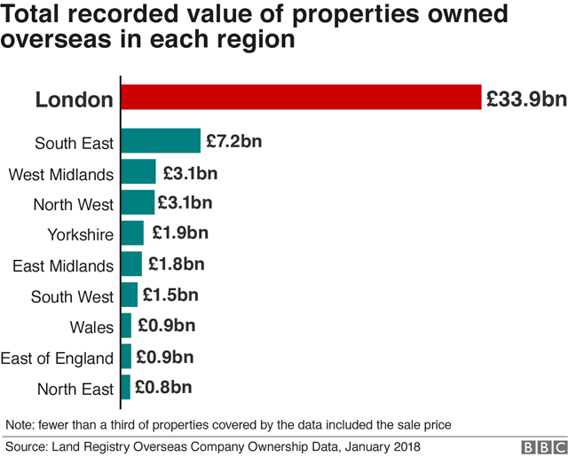 The finding emerged from BBC analysis conducted of Land Registry data on overseas property ownership.
