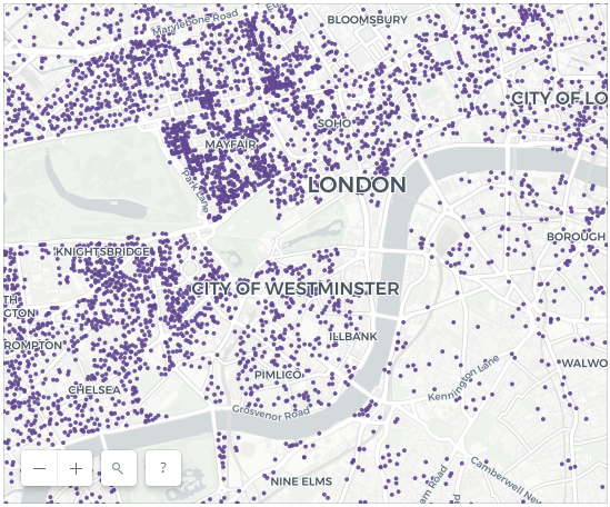 Notes: The BBC analysed the January 2018 Overseas Companies Ownership data made public by the HM Land Registry. The data is accurate up to January 2018 and contains around 97,000 title records of freehold and leasehold property in England and Wales, registered to companies incorporated outside the UK. The map shows 71,000 of the 97,000 addresses. Those missing had incomplete data.